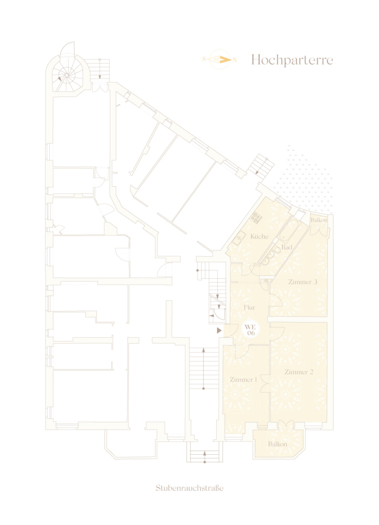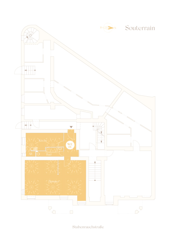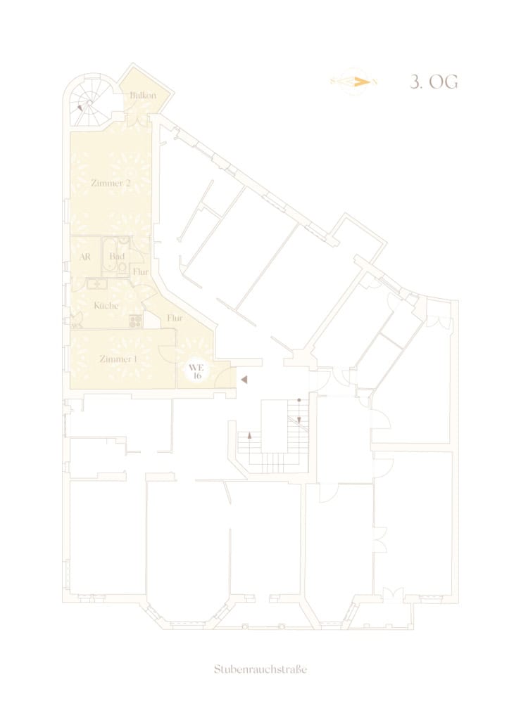 All details according to existing approval planning. The attic floor blank is being sold to a buyer in its unfinished, as-is state, including planning permission. The respective owner of the top floor has the right to complete the conversion.