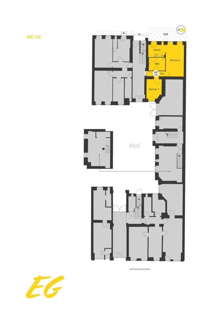 Die insgesamt 30 Wohneinheiten im Objekt setzten sich aus Ein- bis Drei-Zimmer-Wohnungen mit unterschiedlichen Grundrissen zusammen – lediglich einzelne Einheiten besitzen Durchgangszimmer. Je nach Lage geht der Blick aus den überwiegend klassischen Berliner Kastenfenstern auf den ruhigen Innenhof oder auf die schön begrünte Schillerpromenade.