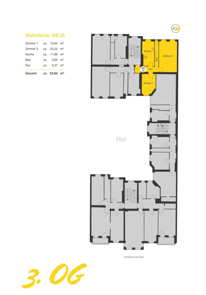 Die insgesamt 30 Wohneinheiten im Objekt setzten sich aus Ein- bis Drei-Zimmer-Wohnungen mit unterschiedlichen Grundrissen zusammen – lediglich einzelne Einheiten besitzen Durchgangszimmer. Je nach Lage geht der Blick aus den überwiegend klassischen Berliner Kastenfenstern auf den ruhigen Innenhof oder auf die schön begrünte Schillerpromenade.