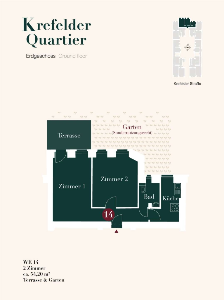 Die klassische Altbauwohnung in der Krefelder Straße 3 unterstreicht den historischen Charme des Hauses und überzeugen mit wunderschönen Altbaudetails wie hohen Decken und Stuckverzierungen. Die ansprechend geschnittene Wohnung im Hinterhaus besticht mit ihrer ruhigen Ausrichtung zum Innen- und Hinterhof und hält eine eigene Terrasse mit Gartenbereich bereit.