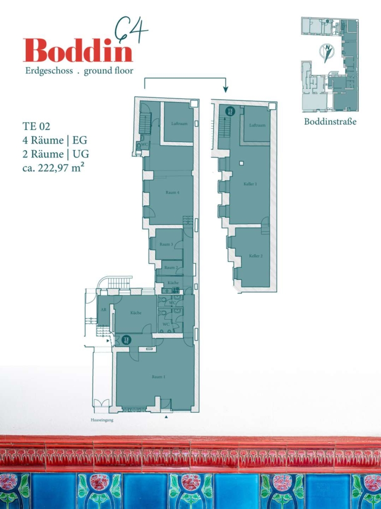 Im Herzen von Berlin – Neukölln befindet sich die Boddinstraße. Die kopfsteingepflasterte Straße mit schönem Baumbestand wird komplett von Altbauten flankiert und bietet als ruhigere Seitenstraße einen Rückzug von Trubel und Geschäftigkeit der Karl-Marx-Straße, die mit Anbindung an den öffentlichen Verkehr und zahlreichen Einkaufsmöglichkeiten aufwartet.