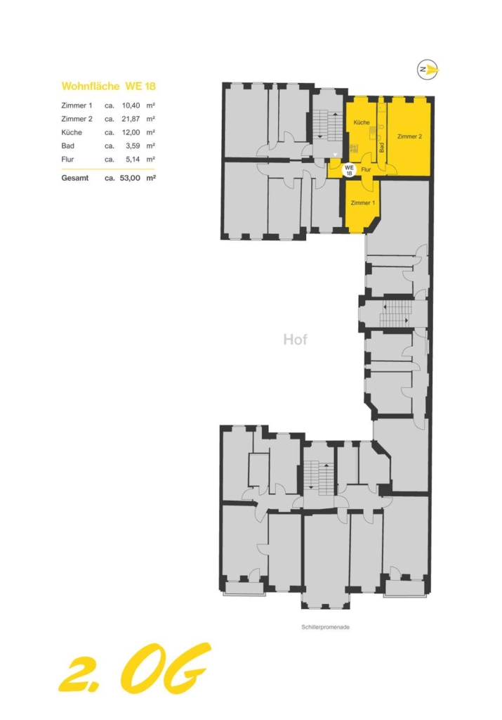 Die insgesamt 30 Wohneinheiten im Objekt setzten sich aus Ein- bis Drei-Zimmer-Wohnungen mit unterschiedlichen Grundrissen zusammen – lediglich einzelne Einheiten besitzen Durchgangszimmer. Je nach Lage geht der Blick aus den überwiegend klassischen Berliner Kastenfenstern auf den ruhigen Innenhof oder auf die schön begrünte Schillerpromenade.