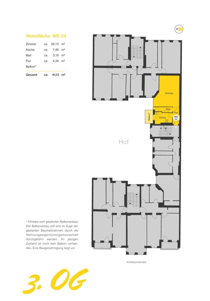 * Der Balkonanbau soll erst im Zuge der geplanten Baumaßnahmen durch die Wohnungseigentümergemeinschaft durchgeführt werden. Im jetzigen Zustand ist noch kein Balkon vorhanden. Eine Baugenehmigung liegt vor.